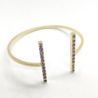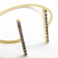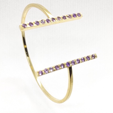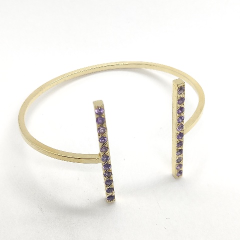 Brazalete de plata de primera ley (925) chapado en oro amarillo de 18kt y amatistas naturales.