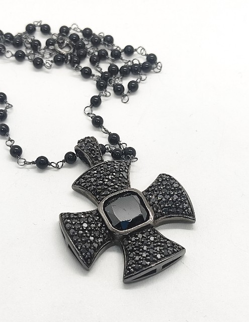Rosario con cuentas de ónix. Medida del rosario 40 + 3 cm