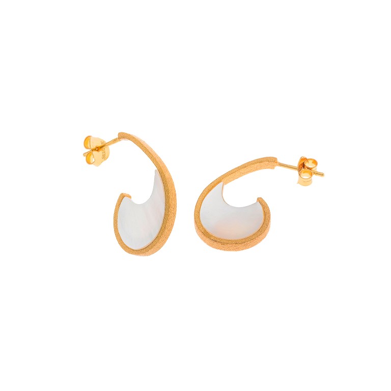Pendiestes oval en plata de primera ley (925), chapado dorado. Textura en mate y nacar.