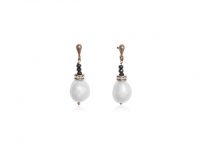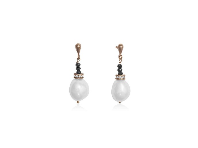 Pendientes de plata de primera ley (925) chapada en oro rosa de 18kt con espinela negra, circonita blanca y perlas cultivadas.