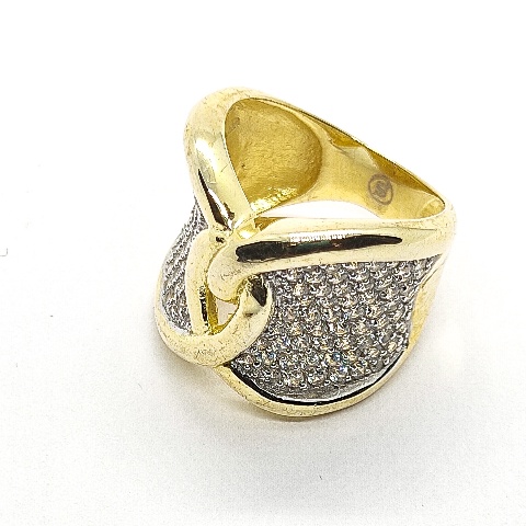 Sortija plata de 1ª ley 925 chapado doradoy rodio, circonitas blancas.