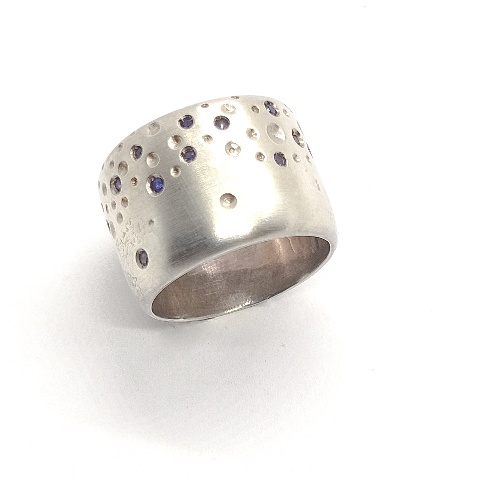 Sortija plata de primera ley (925) zafiros azules naturales.