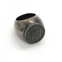 Sortija plata de primera ley (925) y doblete con oro amarillo de primera ley (750/1000), envejecida, topacios y zafiros azules.
