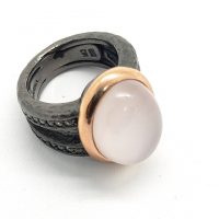 Sortija plata de primera ley (925) y doblete con oro amarillo de primera ley (750/1000), envejecida, topacios y zafiros azules.